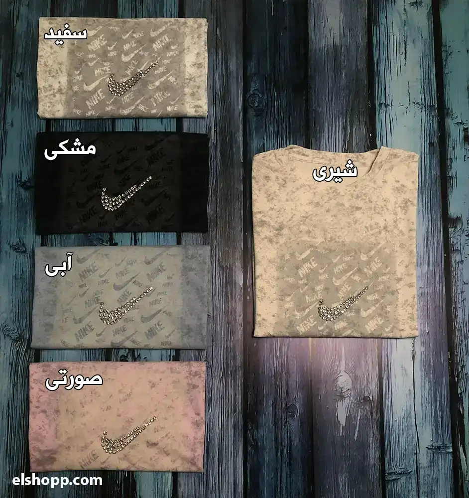 رنگبندی تیشرت نگینی : سفید، مشکی، شیری، آبی، صورتی